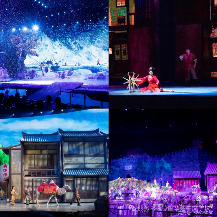 夜幕垂落,华夏文旅大剧院内《驼铃传奇》实景演出磅礴启幕。270度旋转舞台将营员瞬间卷入大漠风烟。驼队穿越飞沙走石、狼群环伺,僧人西行矢志不渝,异域商旅踏浪东来……逼真的舞台效果,让营员们身临其境。