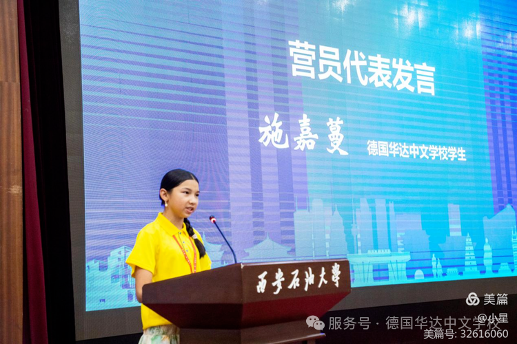 德国华达中文学校的营员代表施嘉蔓激动而真诚的道出心声:“感谢这次的夏令营,我非常期待能和营员们一起亲眼见证世界八大奇迹兵马俑。”